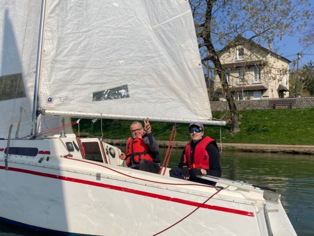Le 1er mars, la Marne se prend pour le fleuve Niger. Un gros débit, des épaves à la dérive et tentative d’escalade des berges, verdict sans appel : on ne navigue pas. Le 8 mars, la Marne a retrouvé son lit, mais Éole est parti. Les berges se reflètent parfaitement dans une eau sans la moindre petite ride. Le miroir est parfait : on ne navigue pas non plus. Le 15 mars, c’est journée bleue. Ce dimanche est consacré à l’entretien des bateaux du club, indispensable pour bien entamer la saison. On ponce, on plie, on marque, on teste, on matelote, on rebouche, on perce, mais on ne navigue toujours pas.